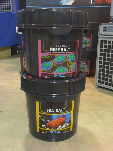 Premium chiller manufacturer Teco is proud to announce he release of their new High end aquarium salts aptly named Reef Salt and Sea Salt. This salt is so new to the states that we dont even have any pricing. The heavy duty 3 gallon bucket makes 140gallons and the 5 gallon bucket will mix up to 200 gallons of seawater. North american availability will be sorted out in the coming weeks but its safe to say that Teco dealers will be carrying the new product. When asked about pricing we were assured that it would be good.