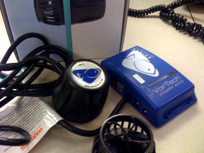 While the world has been anxiously awaiting the Vortech MP10 one customer was lucky enough to snag his earlier then the rest of us. The pump, which has been unboxed was placed on a 24 gallon nano aquarium and looks to be doing a fine job with handling the water flow responsibilities on the tank. If you haven’t already ordered one then you’ll probably have to wait another 1-2 weeks as retailers have already started to run out of their limited amount of stock they have received on the pumps. Marine Depot has them listed as “Pre order” for $194.99, along with Premium Aquatics for $195.99.