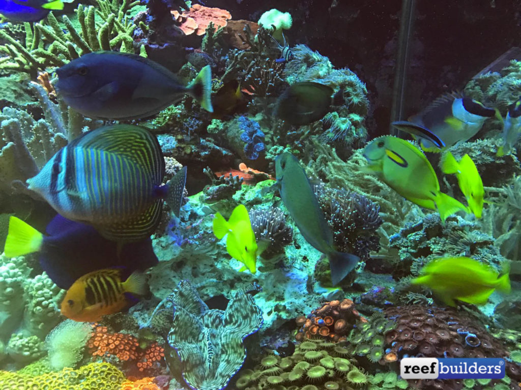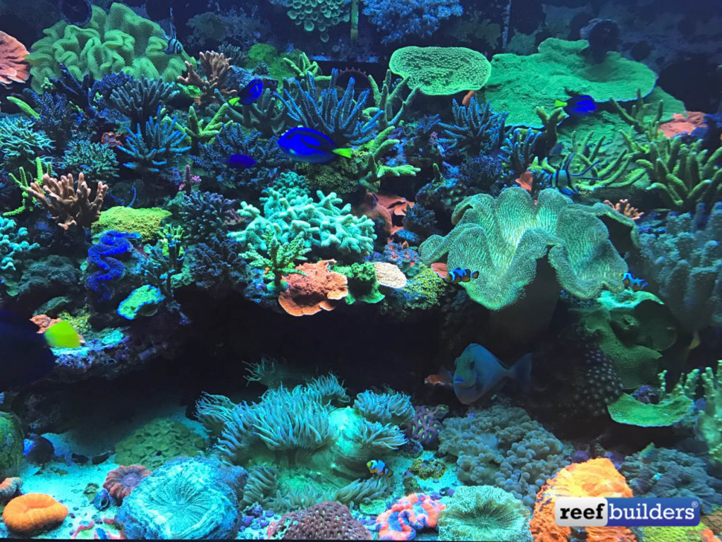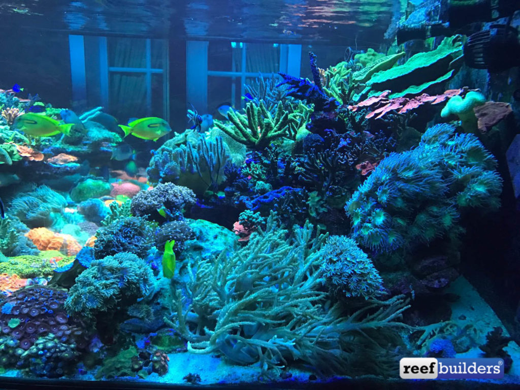 This jam-packed reef tank comes to us from José Elias Castro in the Dominican Republic. This 400 gallon tank is stocked with over 60 fish and just about every coral you could wish for.