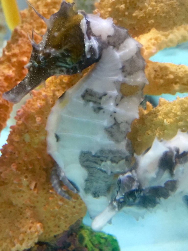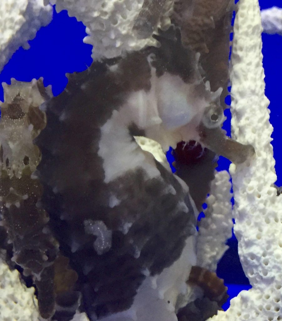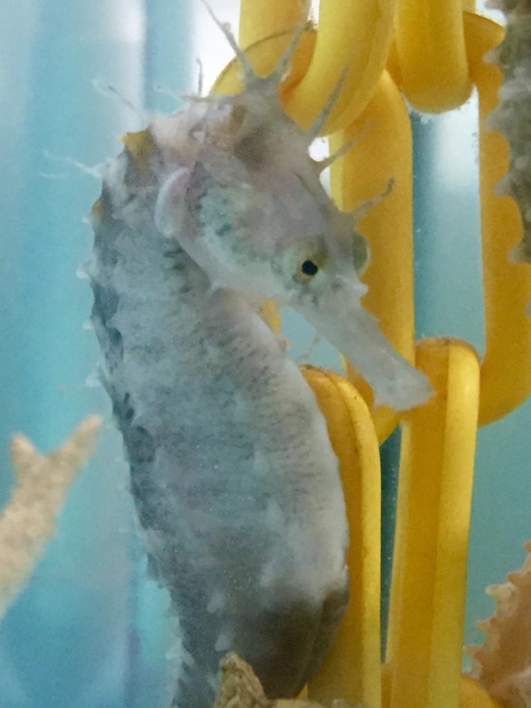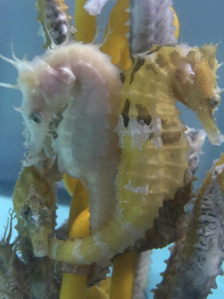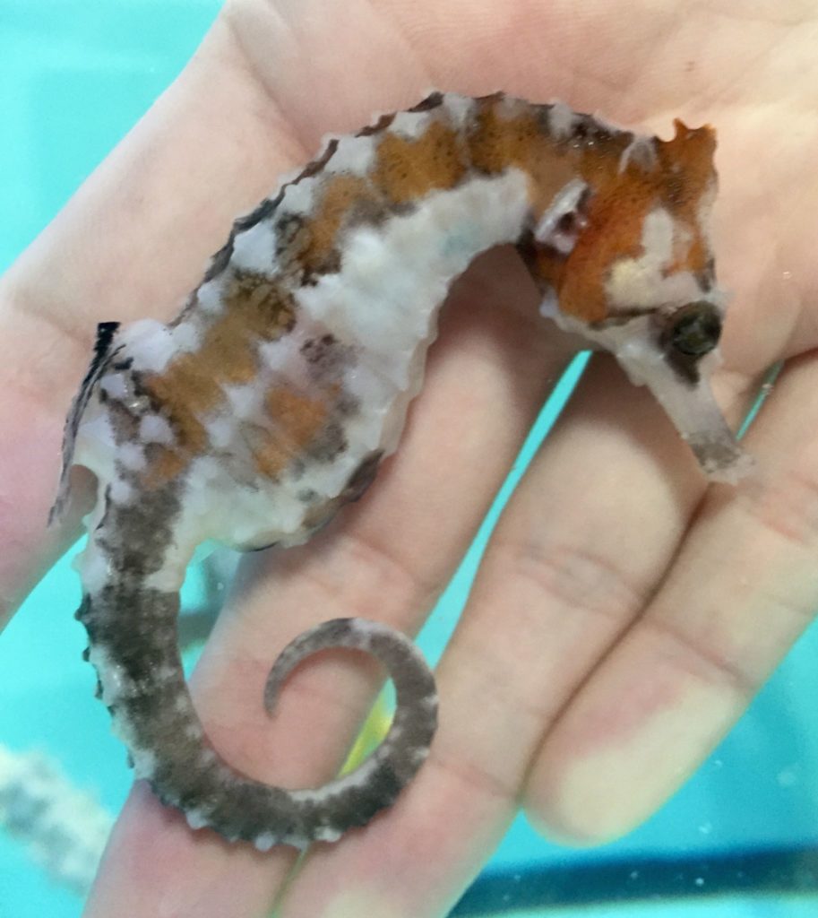 “Our Piebald seahorses are Hippocampus erectus seahorses. We have had a couple dozen from several different broods from a pair of wild Erectus that were collected in the Florida Keys for us about a year ago.