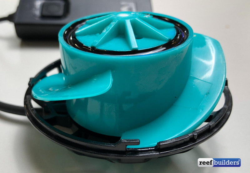 However once it’s taken out of the box you can immediately see that the pump itself is as carefully designed as the packaging it comes in. A broad front facing outlet gives way to a colorful teal propeller with a unique ‘inside-out’ design. The only water inlet for the AI Nero 5 is a hexagonal intake grill that is only on the rear of the pump, meaning that water travels very directly through the pump body. It’s a simple twist to remove the front grill and ‘free’ the propeller from its tiny internal stator to reveal just how simple the construction of the AI Nero 5 pump really is.