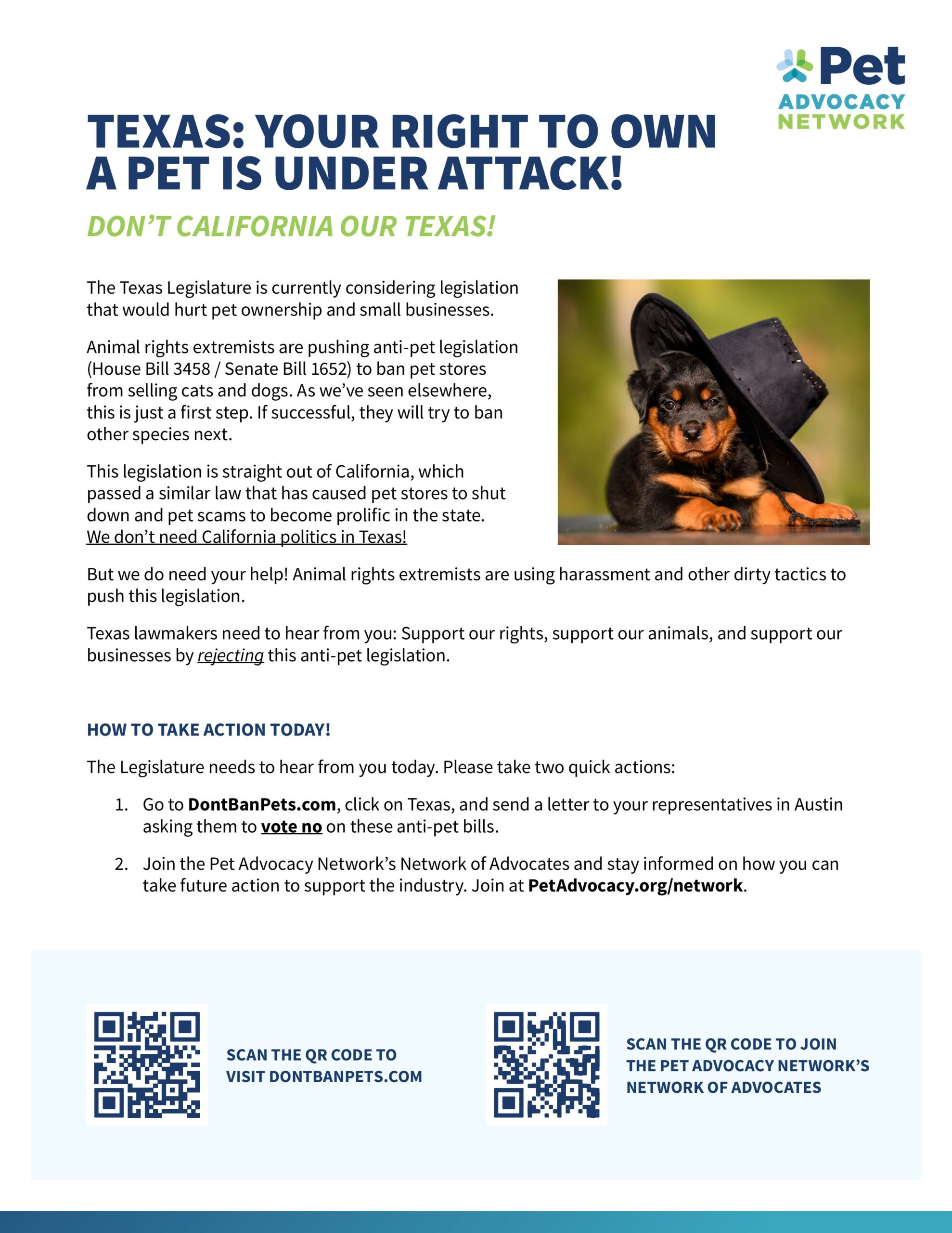 Below are statistics about the California pet ban, as well as actions you can take to help fight the Texas pet ban.