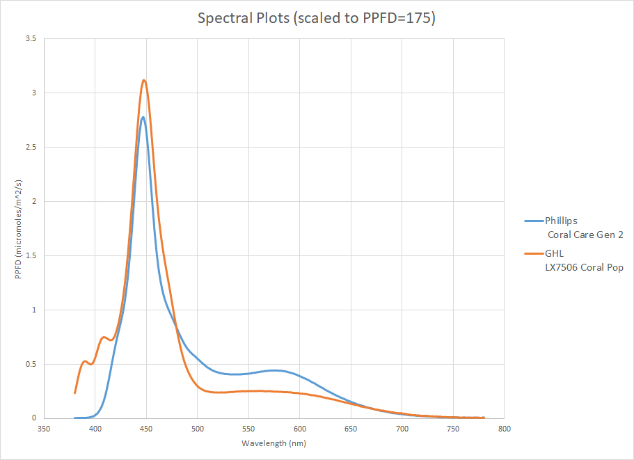 Figure 9. Spectrum comparisons scaled to equal PPFD of 175