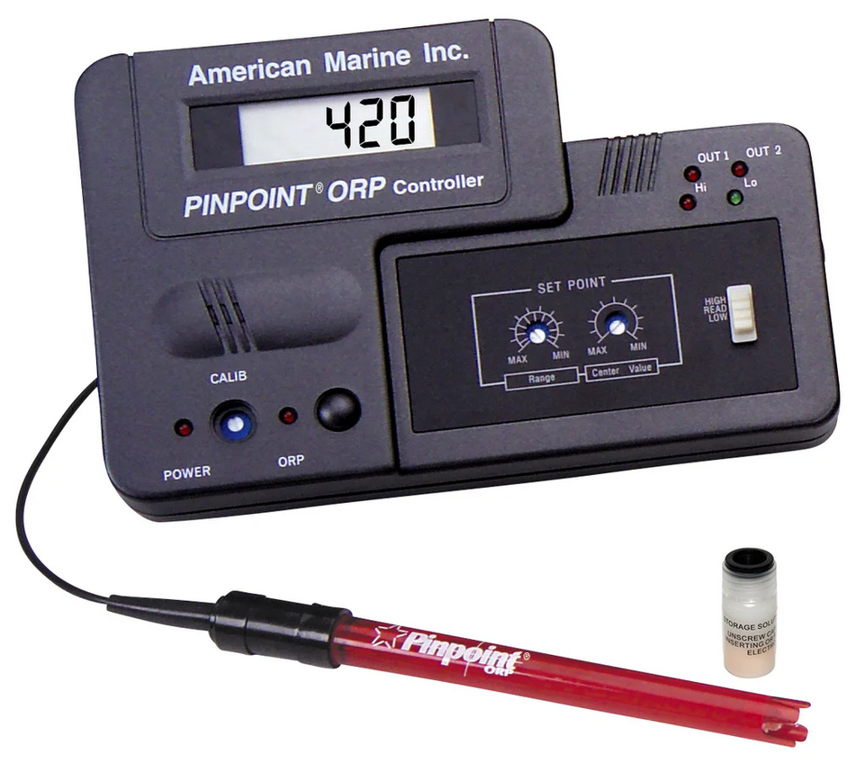 Monitoring/controlling ozone. The most common method of monitoring and controlling ozone is with an ORP controller. This controller will measure the ORP (oxidation-reduction potential, or REDOX) of the aquarium and turn on/off the ozone generator at certain setpoints. A low ORP is generally used as a sign of low water clarity with the desired range to be around 400 mV. As with all probes, ORP probes require calibration and replacement. I’ve found the hobby grade probes begin to drift quite early, requiring more frequent calibration and/or replacement. However, an ORP monitor/controller doesn’t actually measure the O3 in the water column. Any oxidizer can affect the ORP, so if someone dumped bleach in your tank, your ORP reading would be higher. Conversely, if a powerhead fell and suspended lots of sand in the water column, the ORP would be lower, activating ozone production. While being reliant on a tool that doesn’t directly measure what you’re wanting to measure and control are bigger issues in my head than in reality, it’s still something to be mindful of when sizing your ozone generator. While using ORP can be very helpful in controlling ozone, I always recommend additional safeguards.