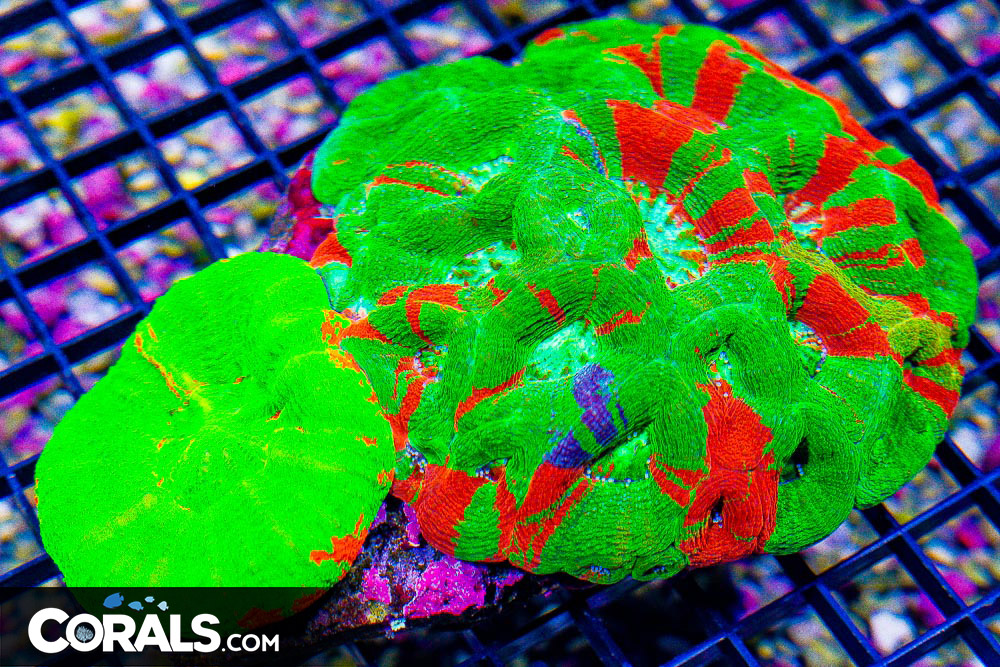 Corals.com landed this crazy Bowerbanki/Scoly Combo from Australia and it has me swooning! It’s a great size, around 5.5″, so perfect for adding some immediate impact in your reef tank.