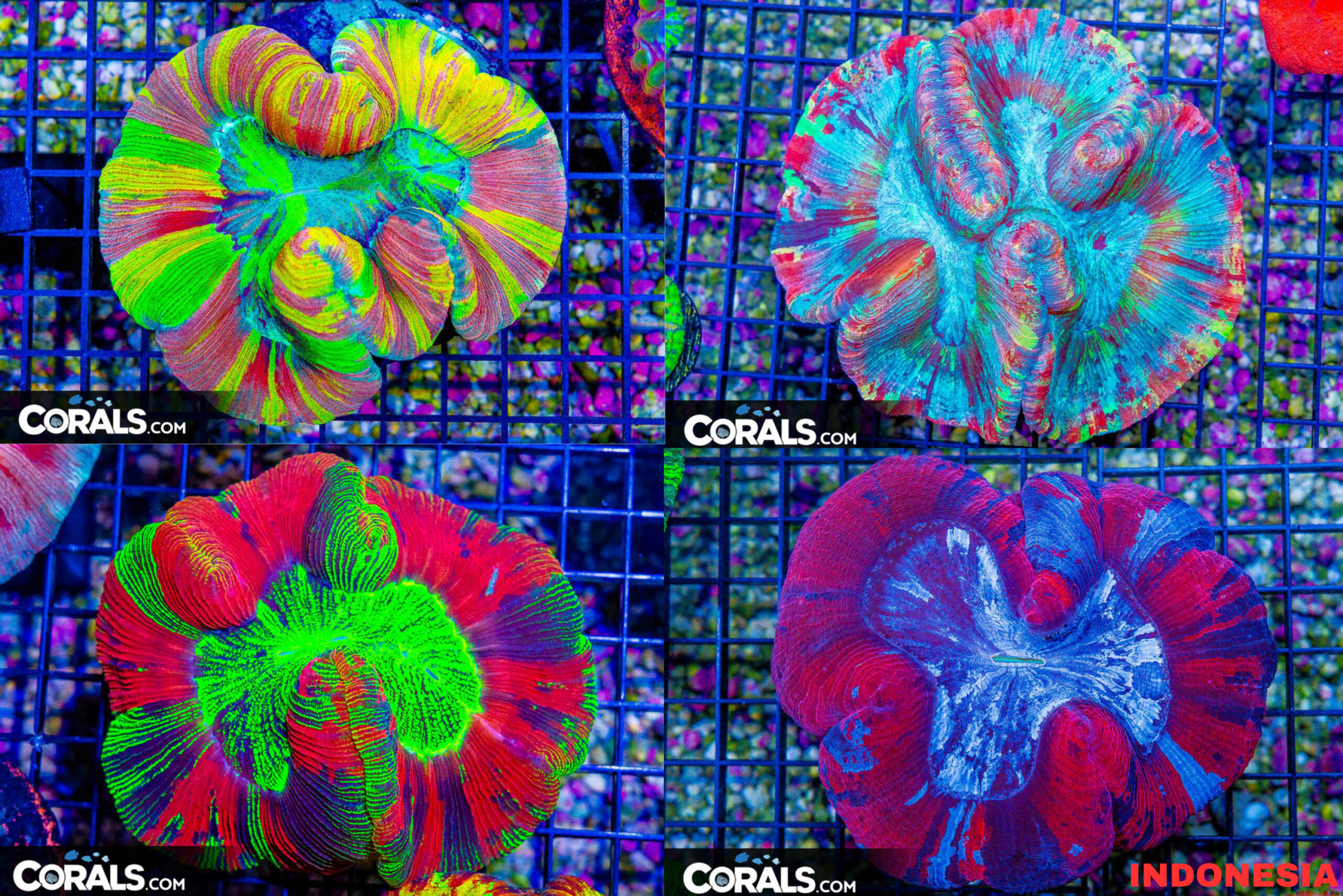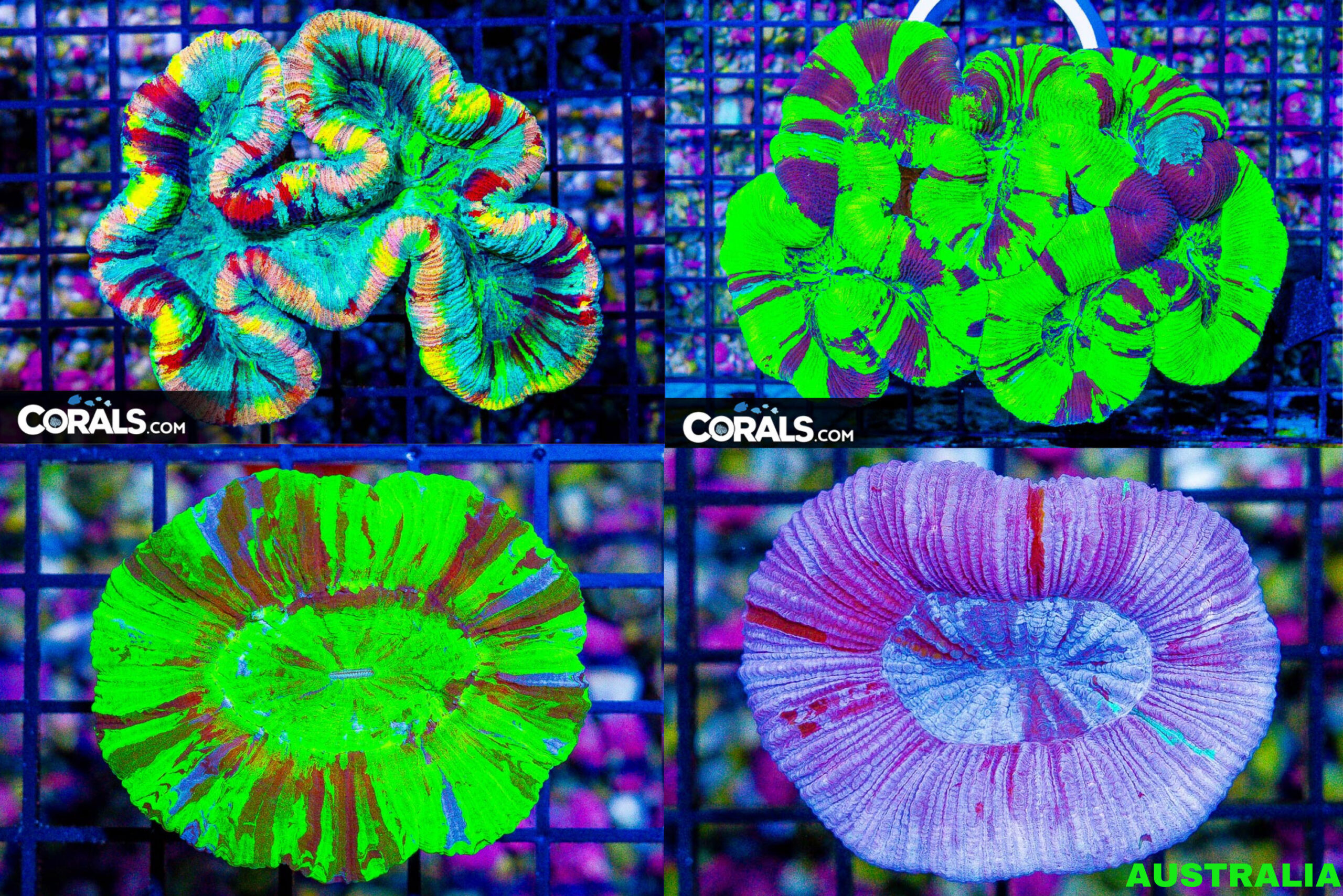 Most Trachy come from Australia and Indonesia. However, with the re-opening of Fiji Coral exports in the beginning of 2024, we are also now able to get Trachy from Walt Smith International (WSI) in Fiji! Out of the 3 countries, Indo Trachy are the largest and most color diverse with wild specimens popping up all the time. Aussie and Fiji typically produce smaller Trachy, with a bit more basic color spectrum (Neon, Pink/Purple and Red), but just as vibrant. Almost all Trachy glow like crazy under an actinic spectrum, and are great reef additions!