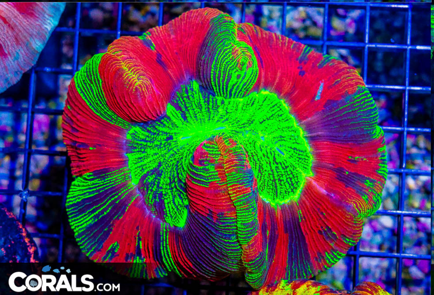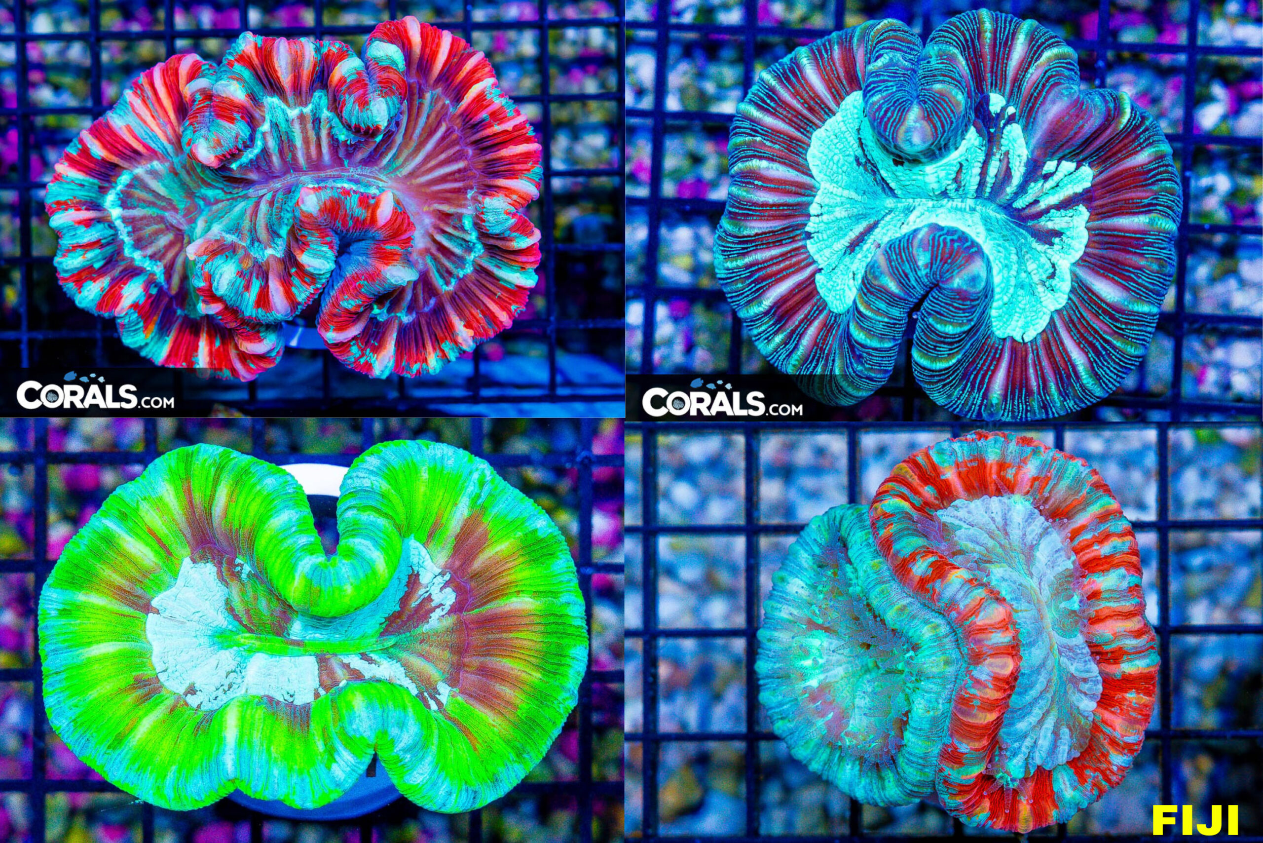 Trachyphyllia, or Trachy, as they are commonly called, are another extremely popular and must have LPS coral! These big meat corals are recognized by their fleshy, brightly colored bodies that light up the bottom of reef tanks. Their vibrant colors can range from deep greens and blues, to extremely bright fluorescing reds, oranges, and pinks, and everything in between! It’s no surprise these Collector’s Corals often become the centerpiece of reef tanks, especially when all those colors blend together to form a Rainbow Trachy.