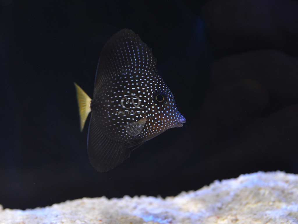 We are incredibly proud to announce a historic achievement: Quality Marine has successfully aquacultured the world’s first Gem Tangs (Zebrasoma gemmatum). These remarkable fish were bred and raised at our state-of-the-art QM Labs aquaculture facility in Los Angeles. They are thriving and actively feeding on Nutramar dry foods—an essential factor for their success in home aquariums. Raised in controlled environments with regular human interaction and formulated diets, these fish adapt rapidly to aquarium life and readily accept commercial food preparations with minimal transition. Throughout their development, Quality Marine has closely monitored their health and nutritional needs, emphasizing premium nutrition from the earliest life stages.