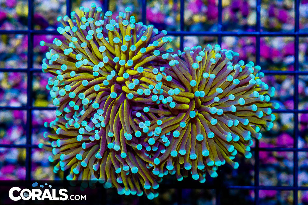 Popular varieties you might encounter include ‘Holy Grail,’ ’24k Gold,’ ‘NY Knicks,’ ‘Tiger,’ ‘Banana,’ and ‘Dragon Soul.’ The combination of tentacle and tip colors creates a mesmerizing display, especially in a large colony. Appearance can vary by region; for instance, Indo Torches typically have more pronounced tentacles, while corals from Fiji and Tonga may have shorter ones.