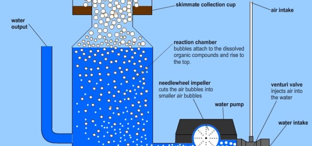 Diagram of a modern protein skimmer with a needlewheel pump