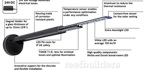 Tunze added the LED full spectrum 8850 bar to their lineup at Interzoo 2014. It comes equipped with 7 white (5000K), 7 blue (470/450nm), and 12 red Nichia and Osram LEDs; which provides…
